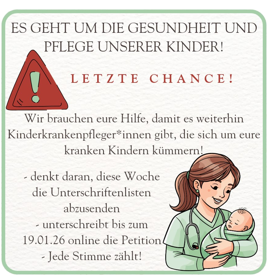 - Kinder brauchen spezialisierte Pflege – jetzt bundesweite Petition mitzeichnen! 16. Dezember 2025
